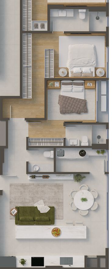 Empreendimento torre única com 6 apartamentos por andar e plantas espaçosas com opções vista mar ou vista montanha.