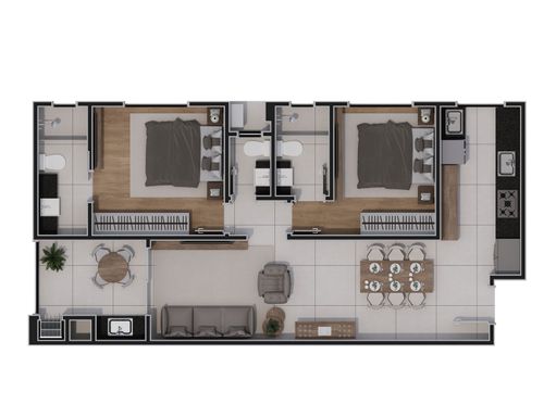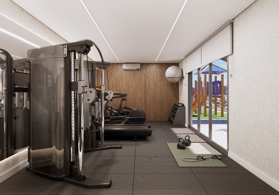 Apartamento 2 dormitorios sendo 1 suíte, sacada com churrasqueira a carvão, banheiro social e uma vagas de garagem.