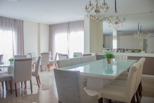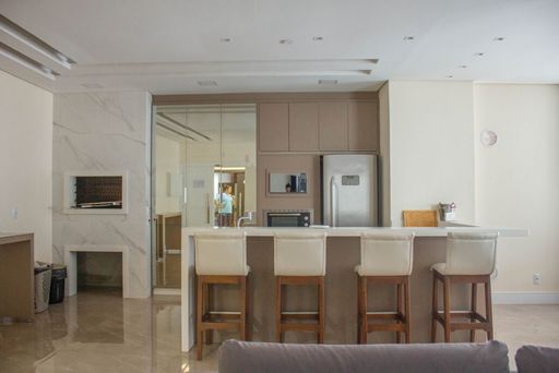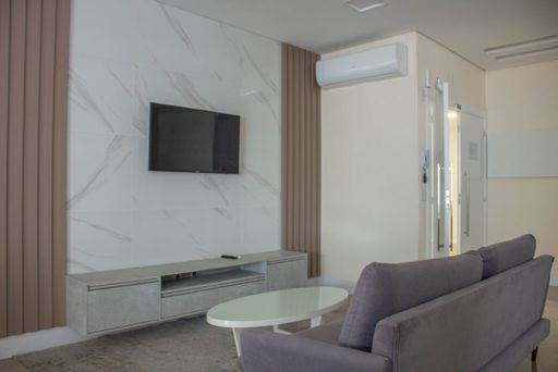 Apartamento de 2 suítes com lavabo, ampla sala de estar, cozinha, jantar e varanda com churrasqueira à carvão. Apartamento possui ótima posição solar. Conta com móveis na cozinha, dormitório com guarda-roupa, além de banheiro com box. Apartamento possui um lavabo na sala.