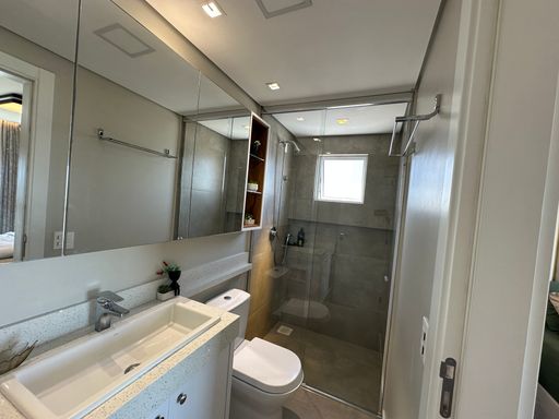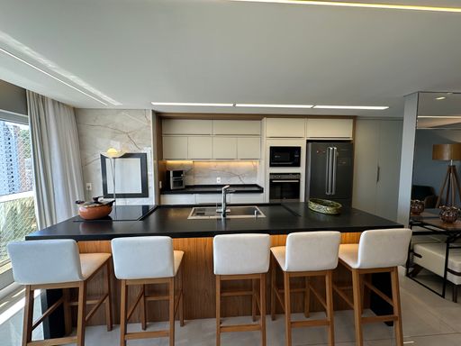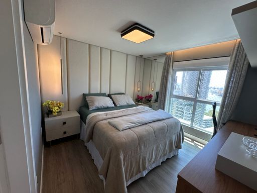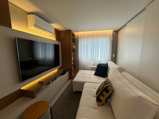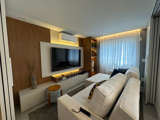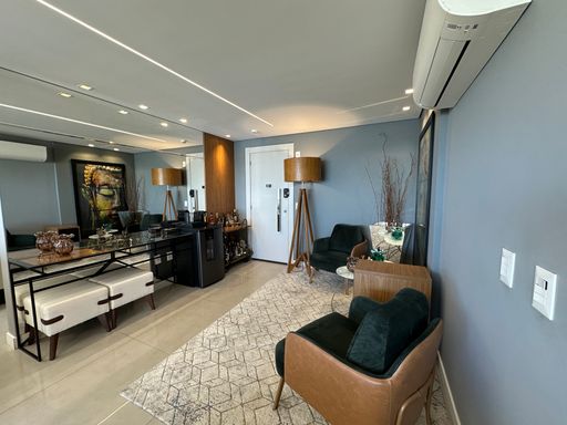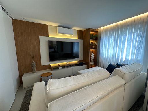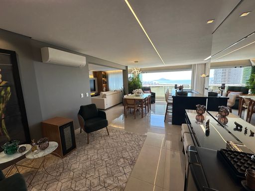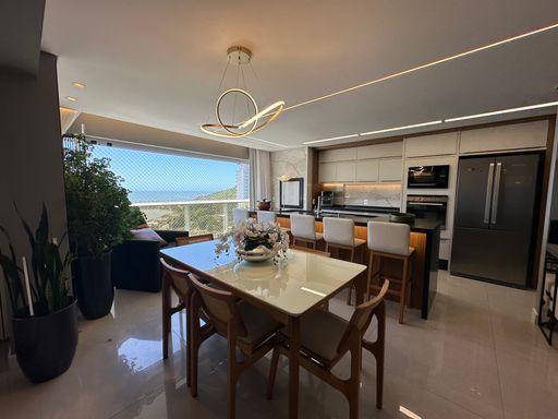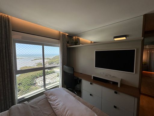 Fantástico apartamento pensado para quem quer conforto, vista e espaço. Planta de 3 suítes com 108m2 transformada em 2 suítes com living estendido e sala de TV. Cozinha com ilha molhada e vista para o mar, sacada com churrasqueira, varanda integrada com visibilidade piso-teto, ante-sala, lavabo, suíte com closet e banheiro completo, suíte de visitas completa.