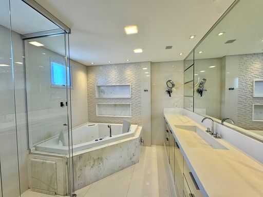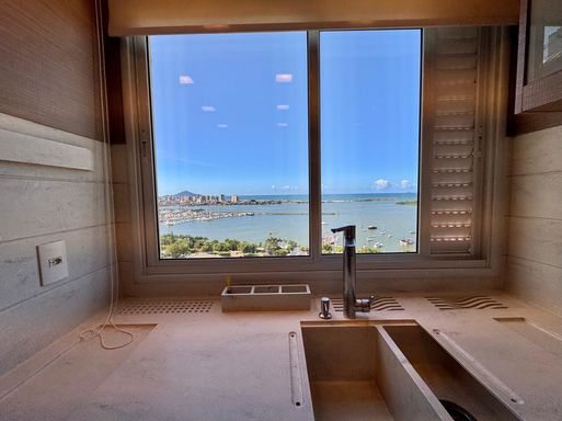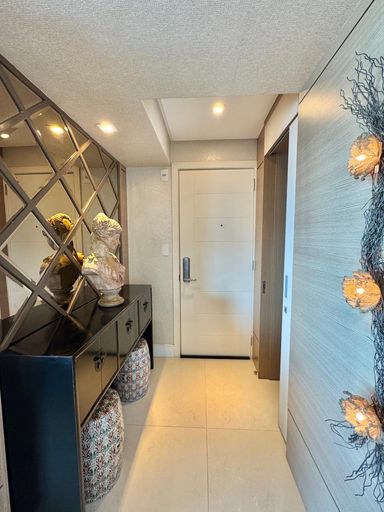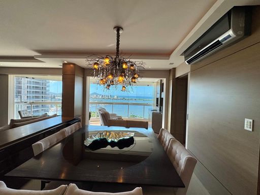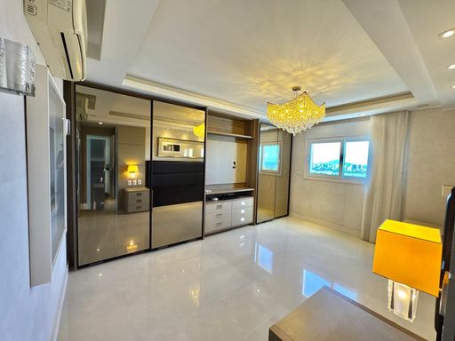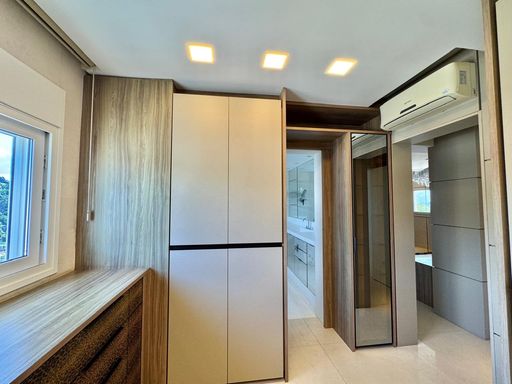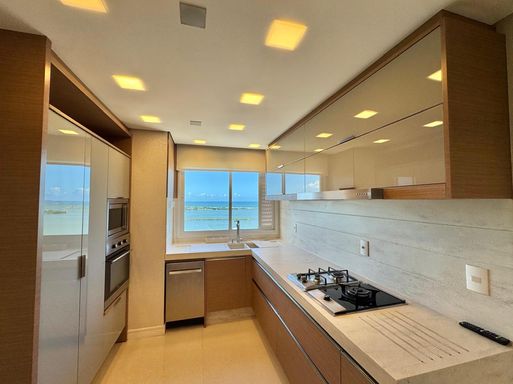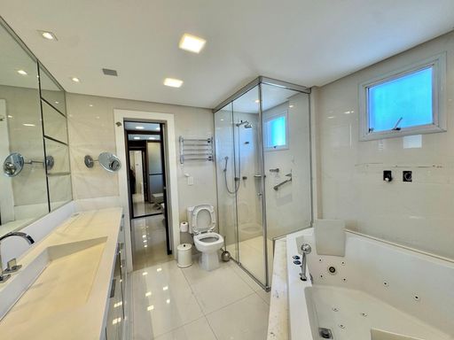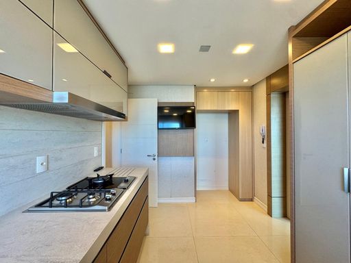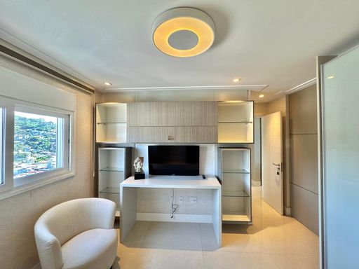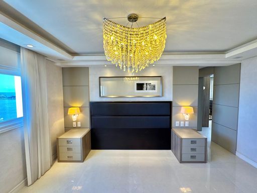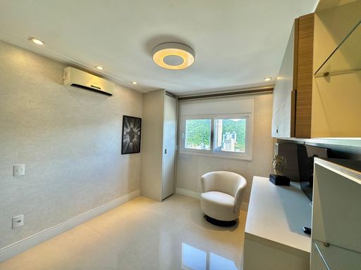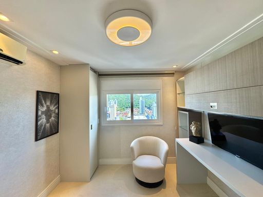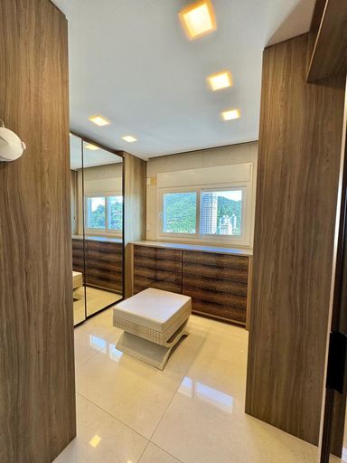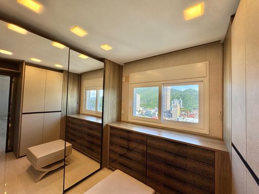 Esse apartamento foi feito para ser uma experiência única para seus moradores. A planta, original de 3 suítes foi transformada em 2 suítes, sendo uma master com closet e hidromassagem dupla com 20 jatos (uma verdadeira sala de banho). A sala de estar, jantar e a sacada (que contam com lavabo) foram integradas e contemplam uma fantástica vista para Rio e Mar em Itajaí, além da churrasqueira a carvão. Cozinha separada completa e área de serviço também separada com acesso individual e banheiro auxiliar.
