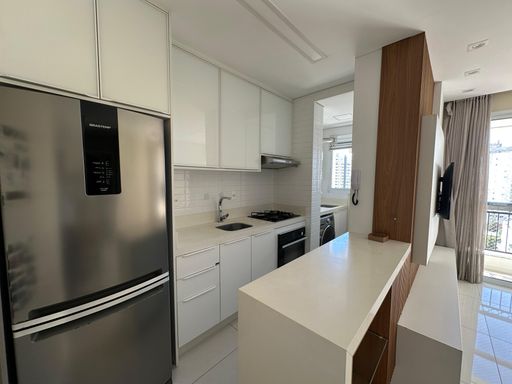 Contando com 1 suíte e 1 dormitório, banheiro social, o apartamento possui ambiente integrado sala de estar e jantar. Ótimo padrão de acabamento com piso cerâmico nos dormitórios e na área comum.