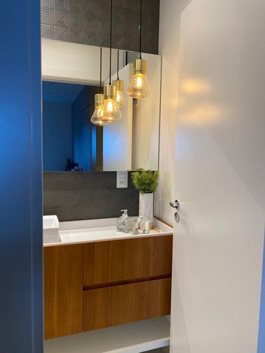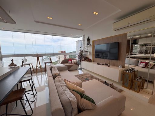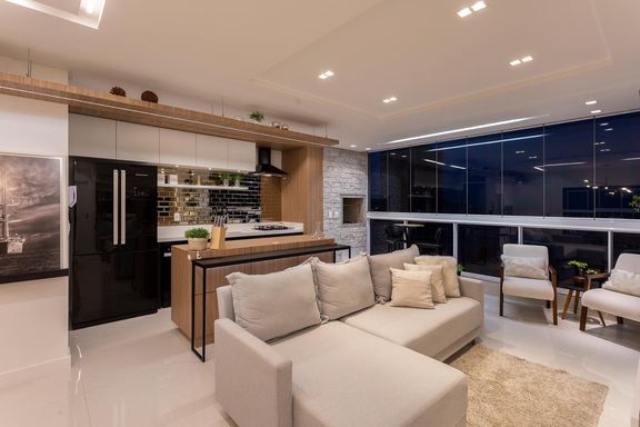 São 1 suíte + 1 dormitório decorado, equipado e finamente mobiliado com projeto arquitetônico de alto padrão. Sala de estar, jantar, cozinha e varanda integrada em conceito aberto fechado em vidro, um dormitório de solteiro com office e uma suíte de ótimo tamanho com móveis planejados.