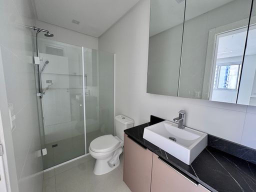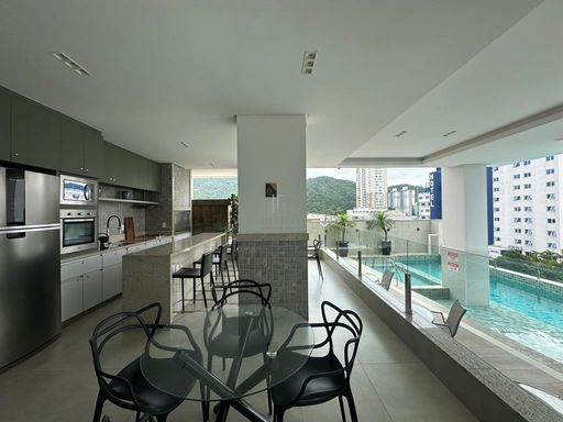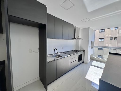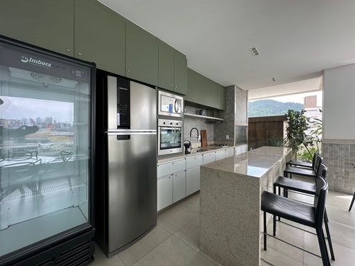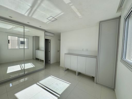 São 1 suíte + 1 dormitório e semi mobiliado. Sala de estar, jantar, cozinha e varanda integrada em conceito aberto fechado em vidro, um dormitório de solteiro e uma suíte de ótimo tamanho com móveis planejados.