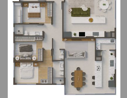 Apartamento 1 suíte + 2 dormitórios, lavabo, sacada integrada com churrasqueira e 108m2 privativos.