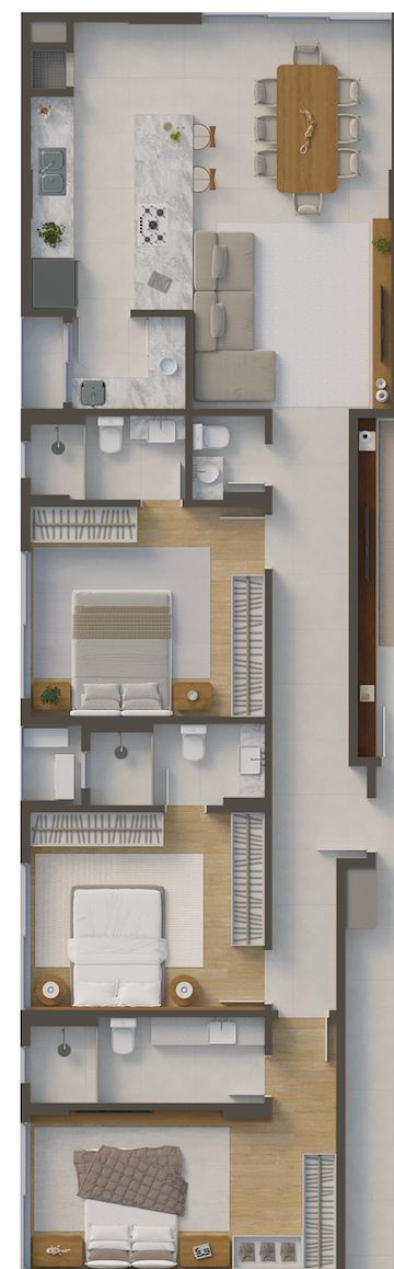 Apartamento 1 suíte + 2 dormitórios, lavabo, sacada integrada com churrasqueira e 108m2 privativos.