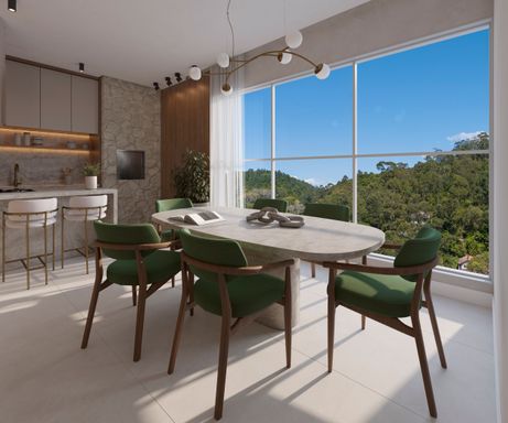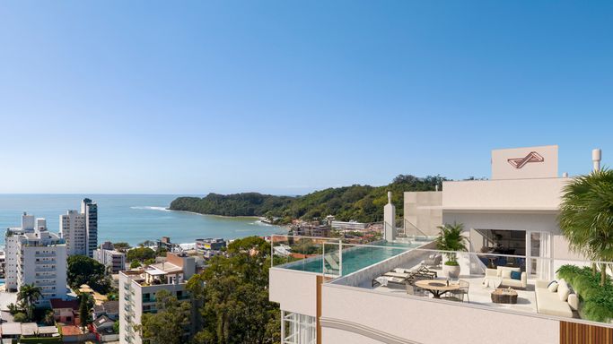 Empreendimento torre única com 6 apartamentos por andar e plantas espaçosas com opções vista mar ou vista montanha.