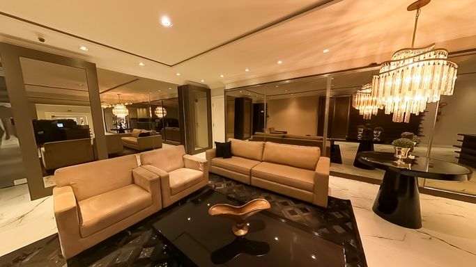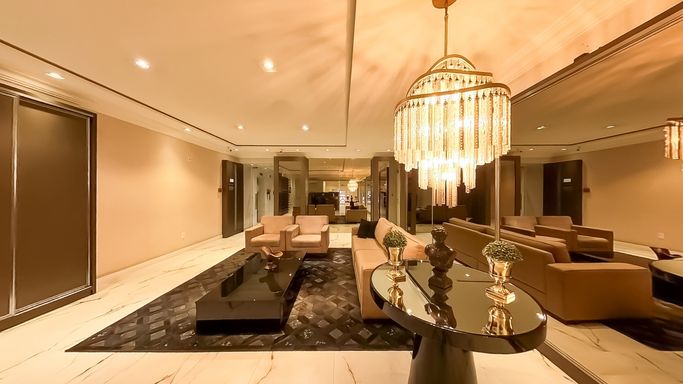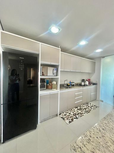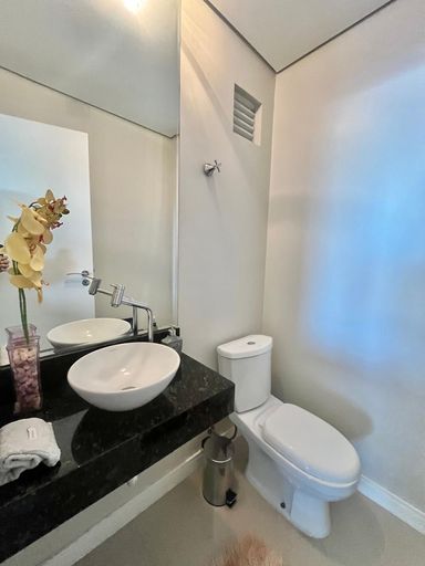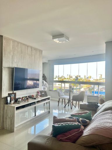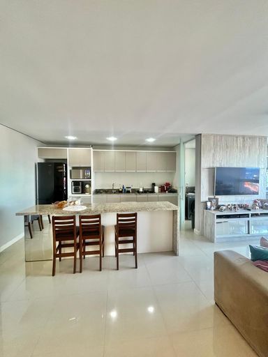 O apartamento está mobiliado e possui 3 suites + lavabo, ampla sala de estar, jantar e cozinha em conceito abertos.