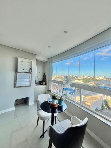 Imóvel pronto para morar, mobiliado e equipado. Hall de entrada charmoso. Apartamento com ampla área social, ambientes climatizados com piso porcelanato nas áreas íntimas e piso vinílico nas áreas sociais. Varanda fechada com vista para o rio Itajaí e para o mar de Navegantes, possuindo churrasqueira a carvão.