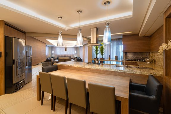 ✔️ Amplo conceito aberto integrando sala de estar, jantar e cozinha