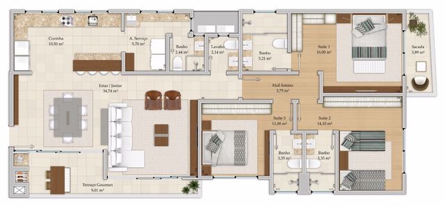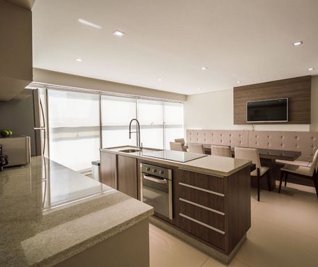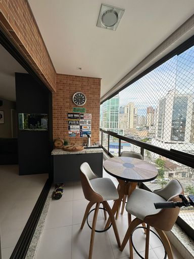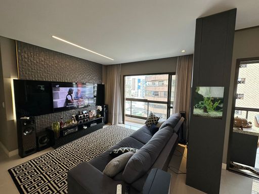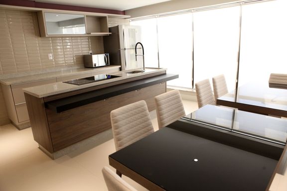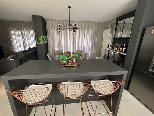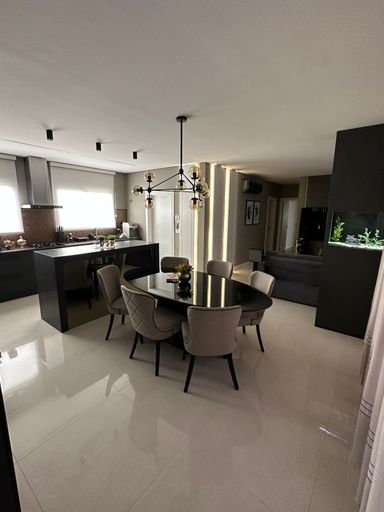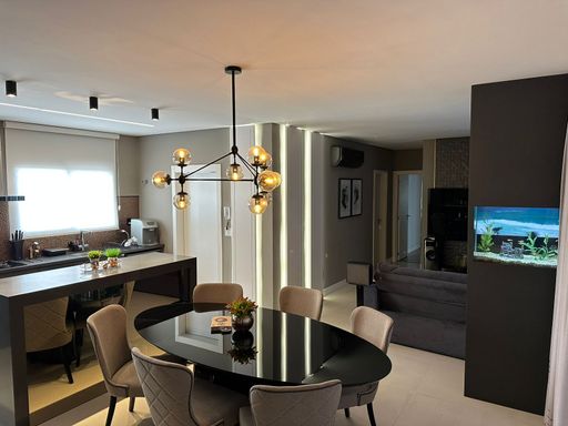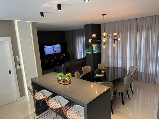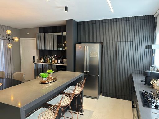 São 3 suítes, lavabo, ampla cozinha integrada com a sala de jantar e acesso a sacada com churrasqueira. Sala de estar com janela panorâmica, lavabo e área de serviço separada com banheiro auxiliar.