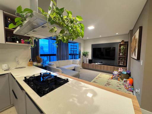 Apartamento de 107m² com 3 suítes, amplo living com ambientes integrados e cozinha em conceito aberto