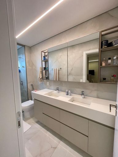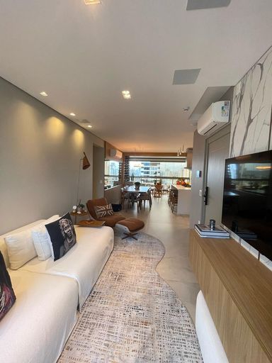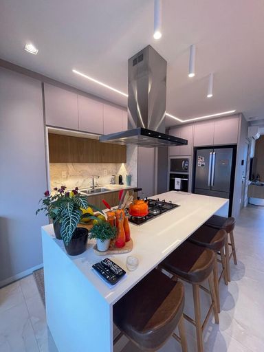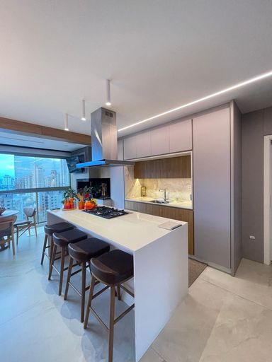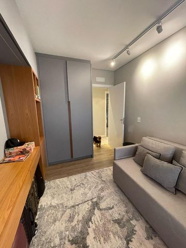 O apartamento conta com 3 dormitórios, sendo uma suíte, banheiro social, lavabo, ampla área social para dois ambientes, varanda com churrasqueira, cozinha e área de serviço.