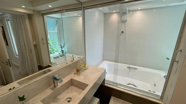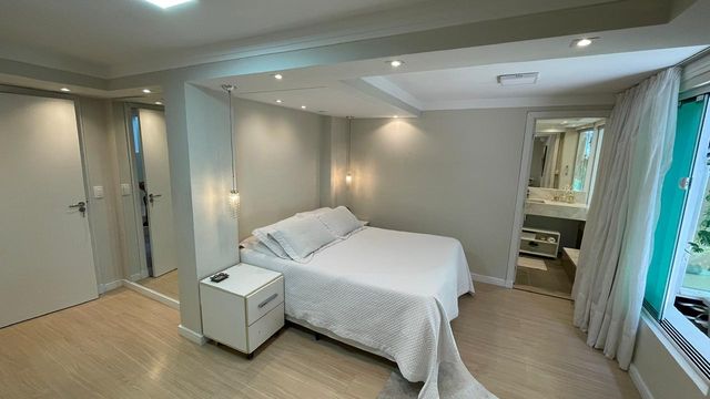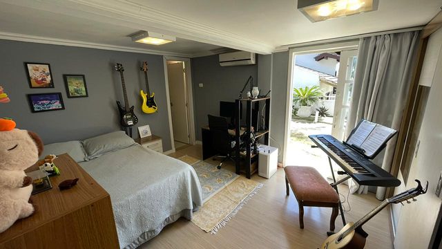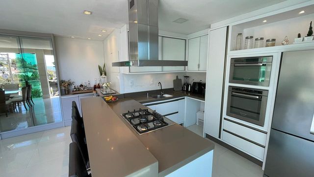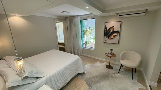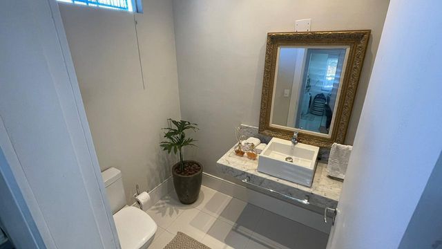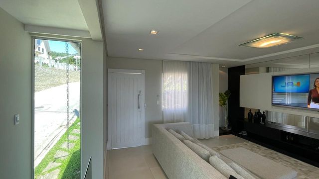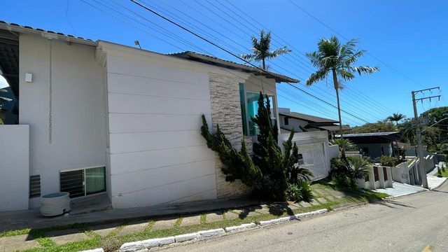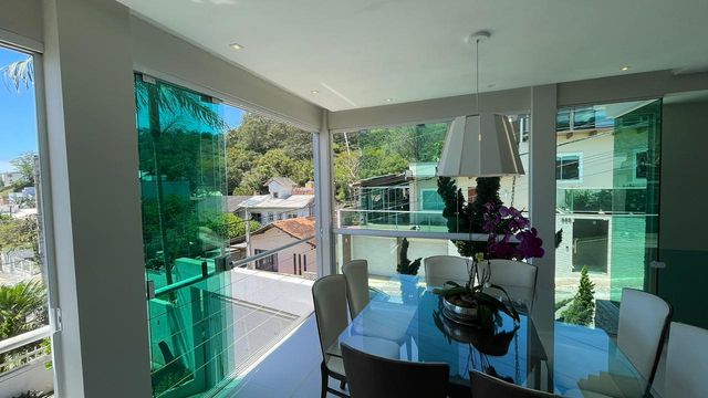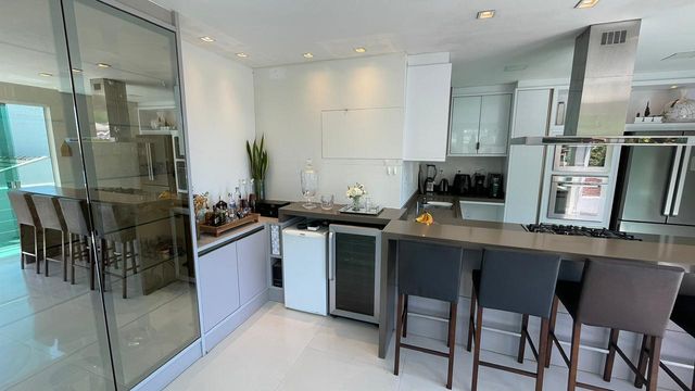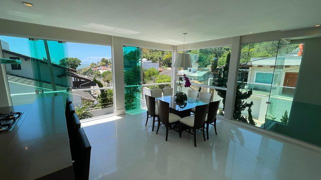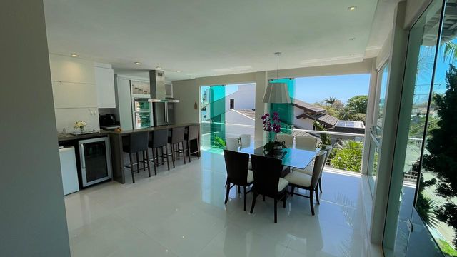 Casa conta com 3 suítes sendo 1 master com closet e banheira, 4 vagas de garagem, sala de estar ampla, escritório e banheiro separado na área superior, cozinha em conceito aberto com a sala de jantar e uma excelente vista para a orla da praia.